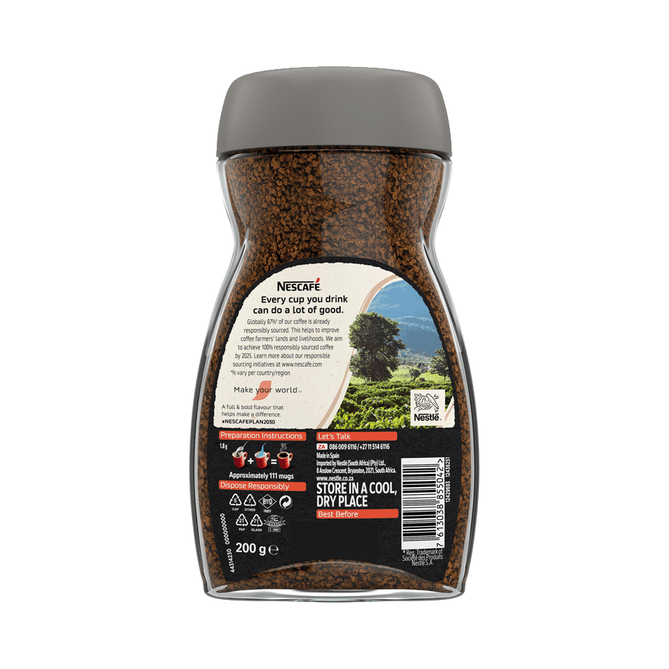 Specially selected beans are carefully roasted for longer than any of our other delicious instant coffees. A new level of bold, rich intensity develop in both flavour and aroma. Made with 100% pure coffee, NESCAFÉ® Black Roast is made bold – for the bold coffee drinker.